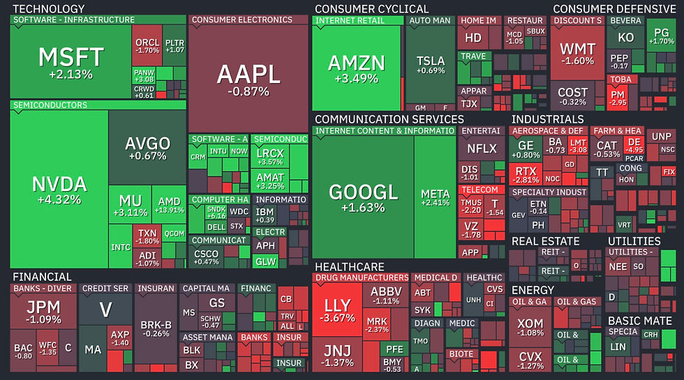 엔비디아는 +4.74% 상승해 6개월 만에 시가총액 5조 달러 고지를 다시 탈환했고 AMD 역시 +13.55% 폭등하며 AI 하드웨어 르네상스 주도